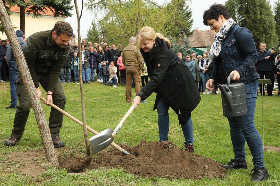 Galéria k článku Prezidentka vymenila šaty za rifle: Kúsok od Trnavy HÁDZALA lopatou a sadila stromčeky! FOTO