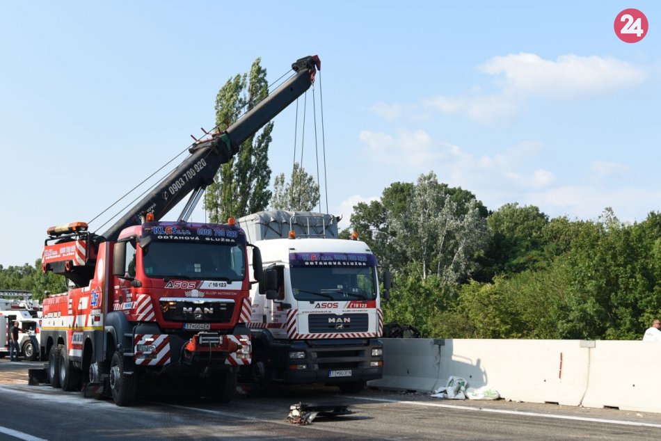 Galéria k článku Na diaľnici sa zrazil kamión, dodávka i osobné autá: Zasahoval aj vrtuľník, FOTO