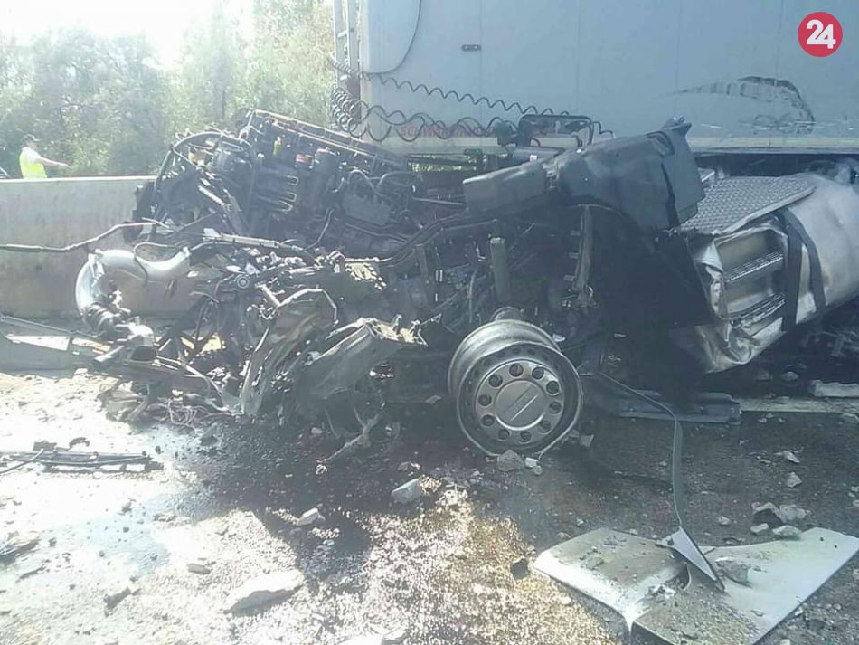 Galéria k článku Nehoda na diaľnici D1: Prejazdný je stále len jeden pruh, FOTO a VIDEO