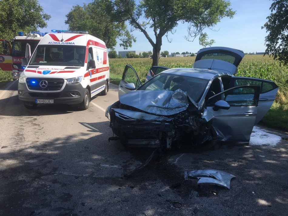 Galéria k článku Neďaleko Piešťan došlo k čelnej zrážke áut: Hlásia zranených, FOTO