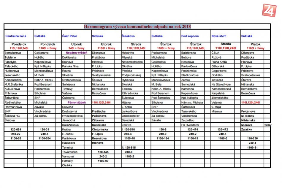 Galéria k článku Vývoz komunálneho odpadu v Hlohovci: Takýto je harmonogram na rok 2018