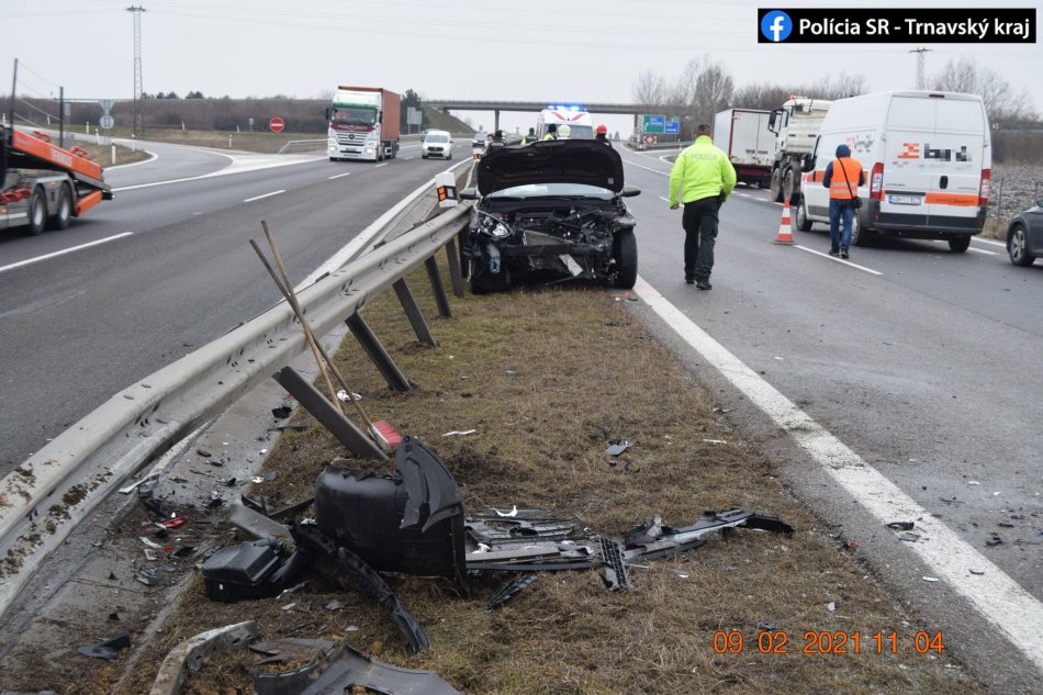 Galéria k článku Hromadná nehoda pred Trnavou: Jedno z áut skončilo vo zvodidlách, FOTO
