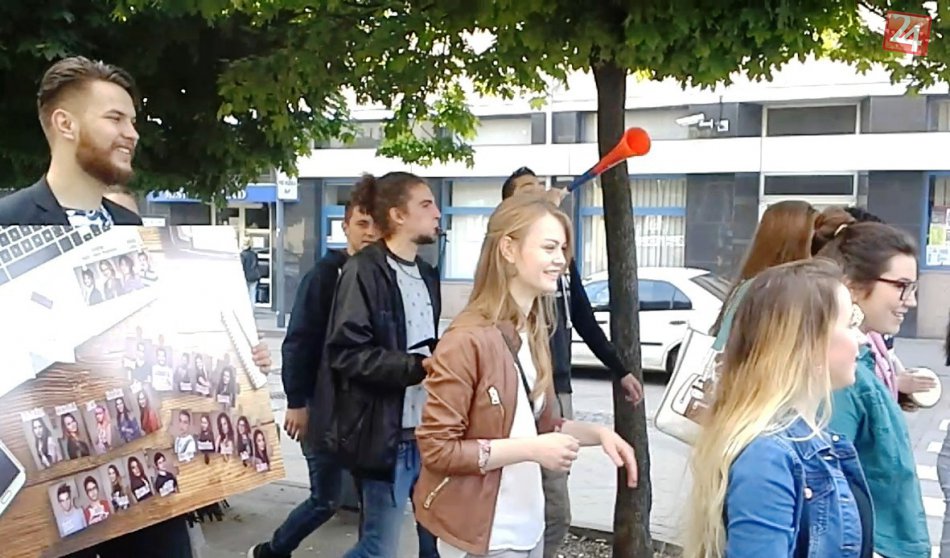 Galéria k článku Bubny, trúbky aj rapkáče: Hlohovskí maturanti vstúpili do ulíc a hneď na seba strhli pozornosť, VIDEO