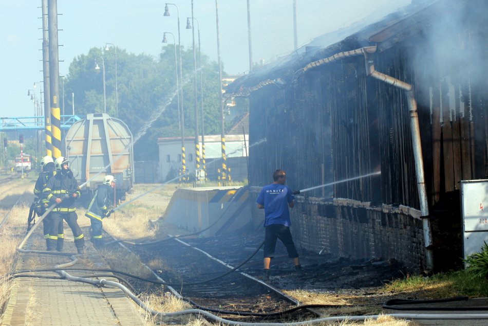 Galéria k článku Drevený sklad na stanici zachvátili plamene: Zhorel do tla