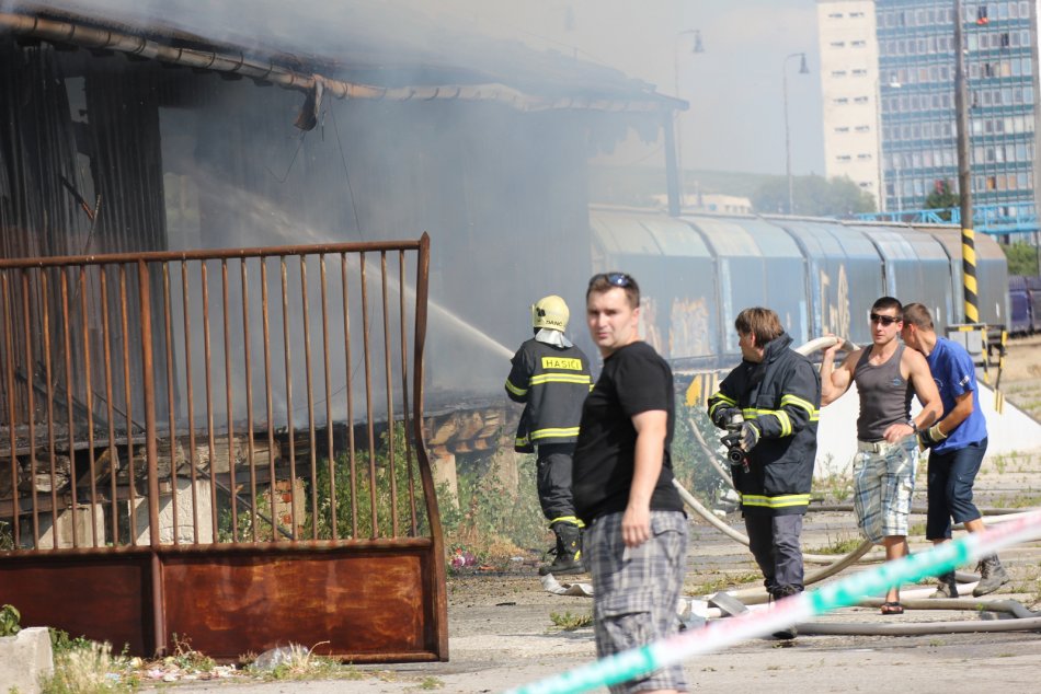 Galéria k článku Drevený sklad na stanici zachvátili plamene: Zhorel do tla