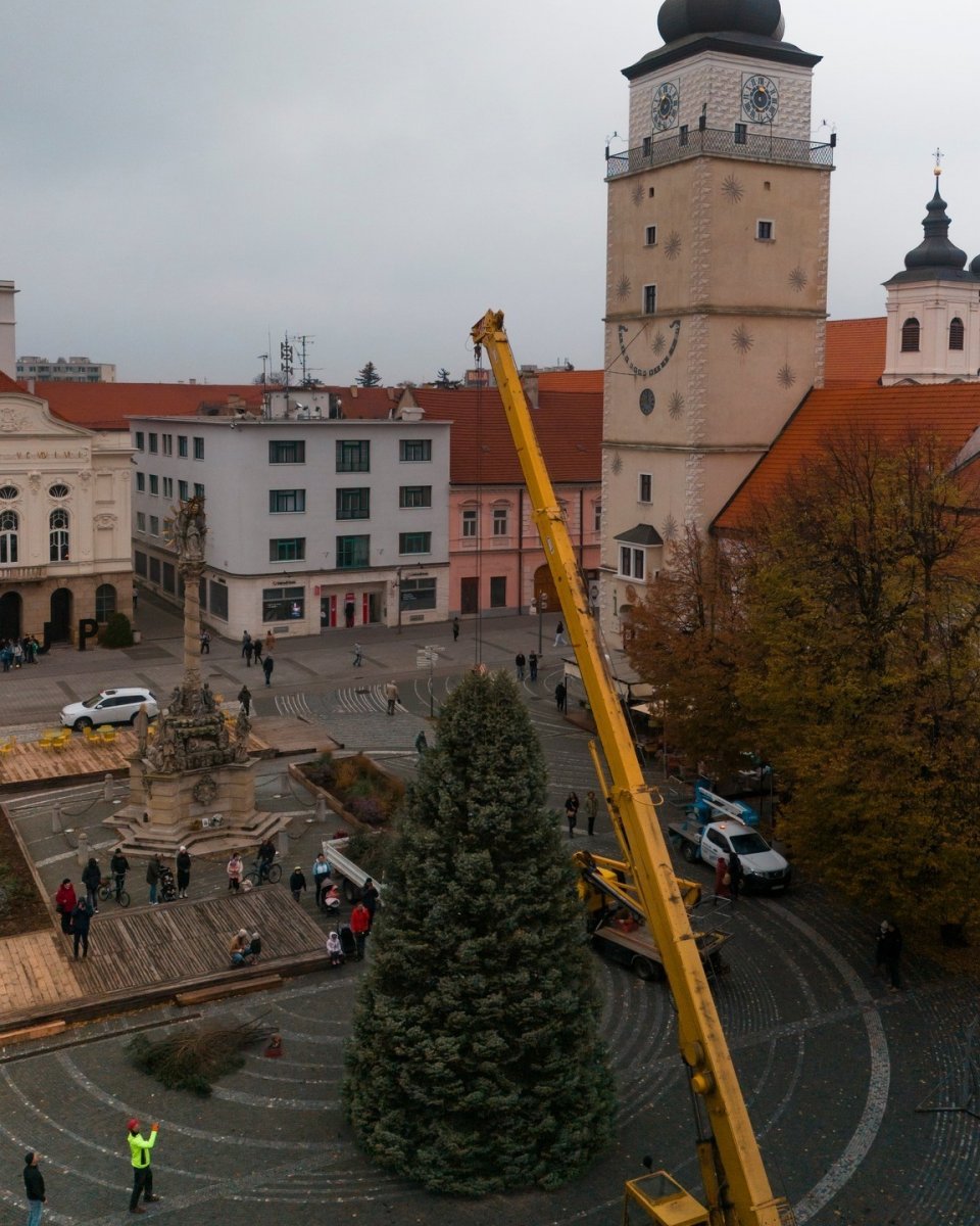 Galéria k článku A je to TU! Na Trojičnom námestí už stojí vianočný stromček, FOTO