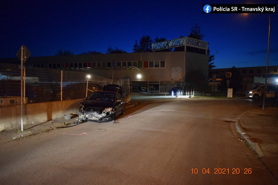 Galéria k článku Trnavčan rozbil auto aj betónový múr: Nafúkal takmer 2,5 promile, FOTO z miesta
