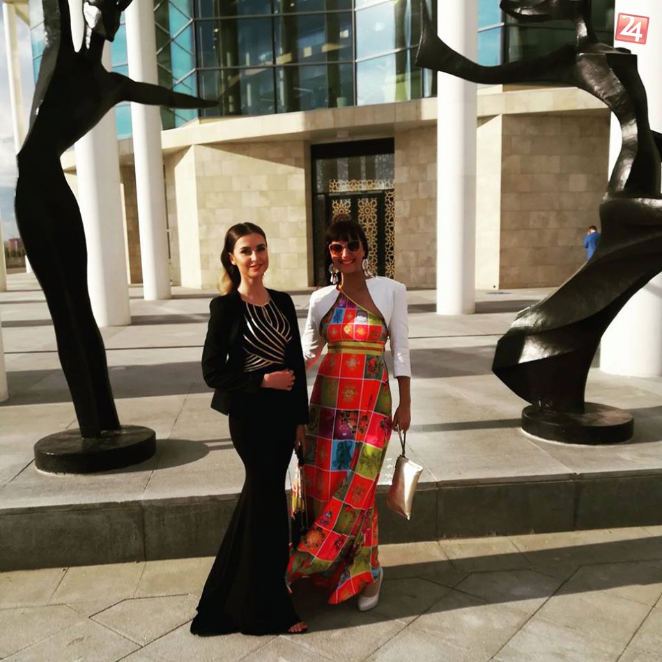 Gabriela Giotto s riaditeľkou slovenského pavilónu Monikou Soročinovou pred budovou Národného Baletu v Astane