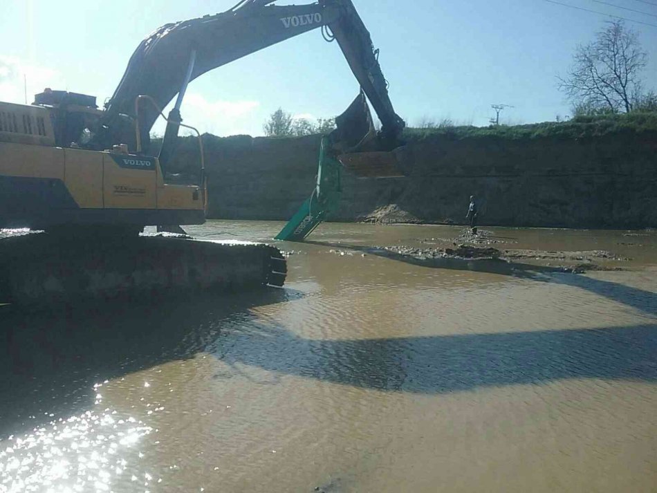 Galéria k článku Bager sa prevrátil a POTOPIL pod hladinu: V kabíne zostal ZAKLIESNENÝ človek!