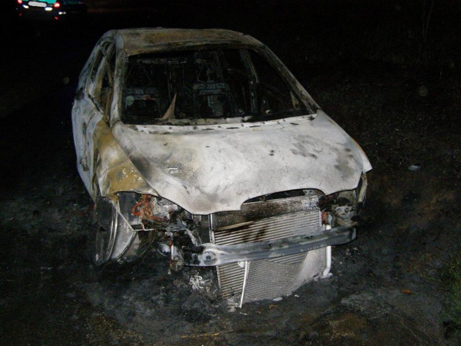 Galéria k článku Na ceste pri Tepličkách horelo auto: Oheň sa rozšíril aj na okolité kríky