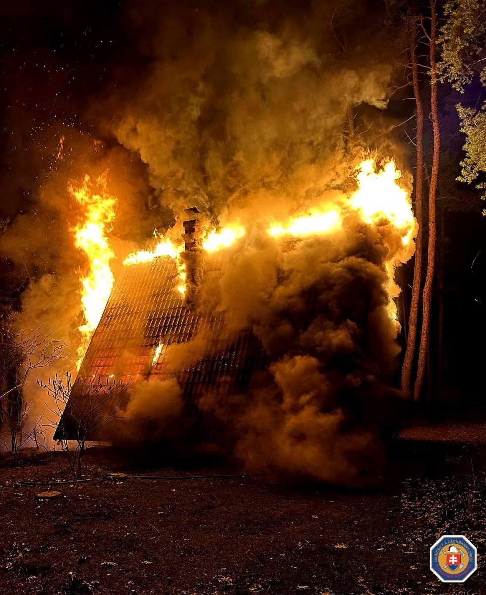 Galéria k článku Nočná DRÁMA a zásah hasičov: Drevenú chatu totálne pohltili PLAMENE! FOTO