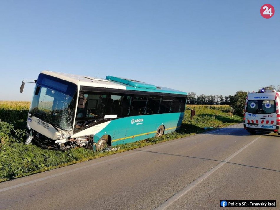 Galéria k článku Vážna dopravná nehoda: Pri Trnave sa zrazilo osobné auto s autobusom, FOTO