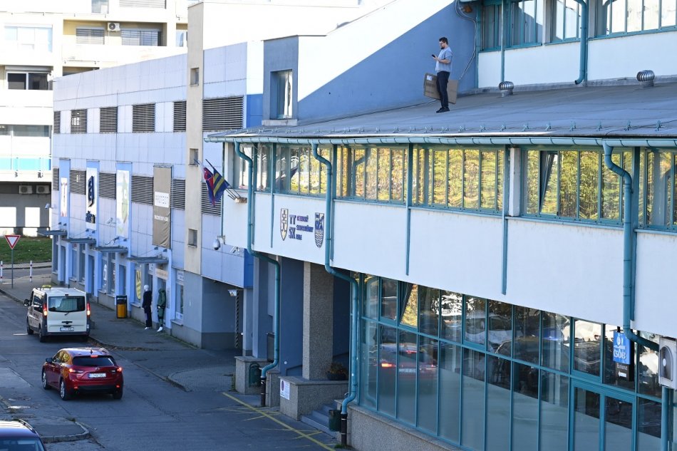 Galéria k článku Muž vyliezol na strechu Úradu TTSK: Protestoval voči postupu krajskej samosprávy