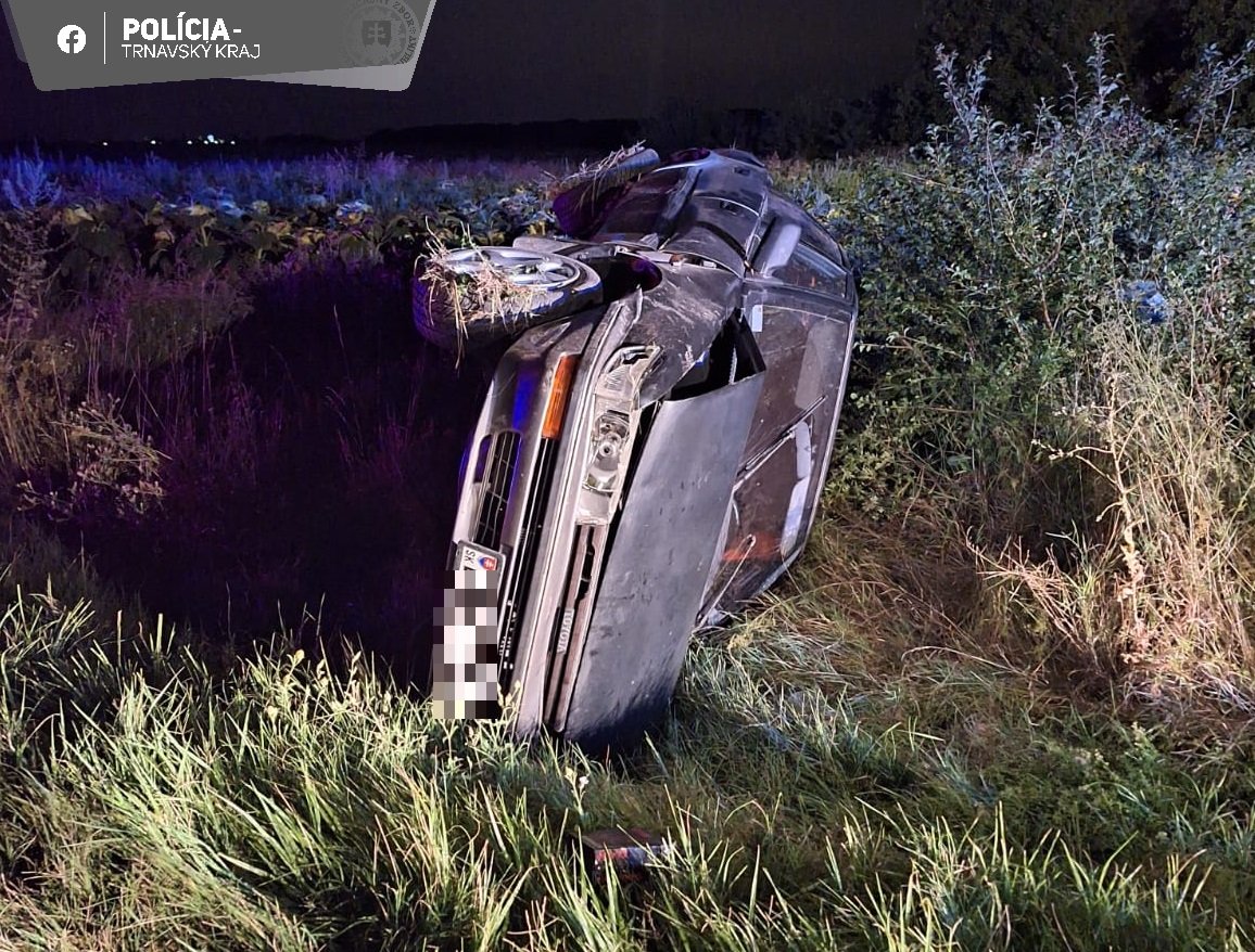 Galéria k článku Pri nehode ZOMREL len 17-ročný vodič: Auto skončilo prevrátené mimo cesty, FOTO