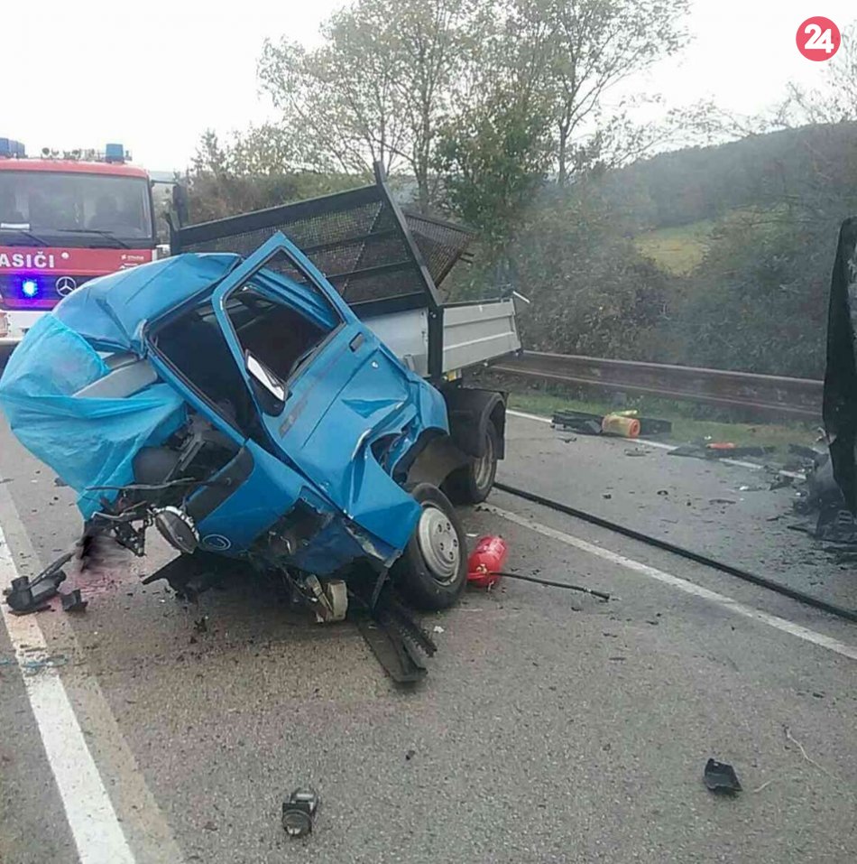 Galéria k článku Tragická zrážka dodávok si vyžiadal dva životy: Jedno z áut zachvátili plamene