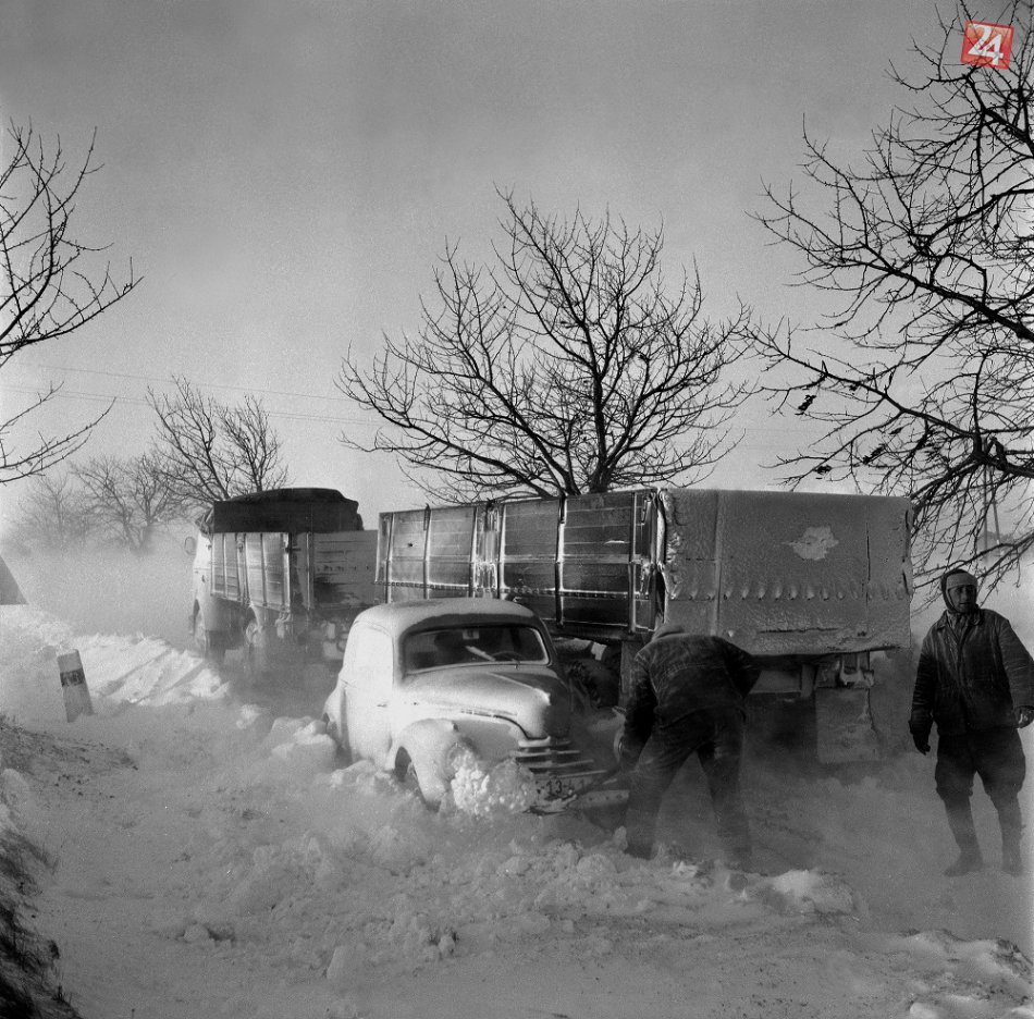 Archívna snímka z 20. decembra 1967. Takto to v daný deň vyzeralo na štátnej ceste Trnava-Bratislava