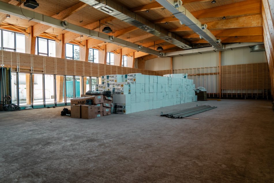 Galéria k článku Žiaci v Modranke sa môžu tešiť na modernú telocvičňu: FOTO tesne pred dokončením