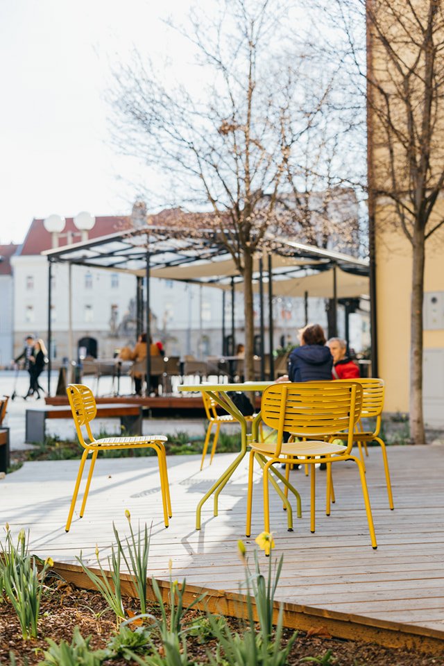 Galéria k článku Užite si príjemné posedenie na jarnom slnku: Žlté stoličky sú späť v uliciach Trnavy!