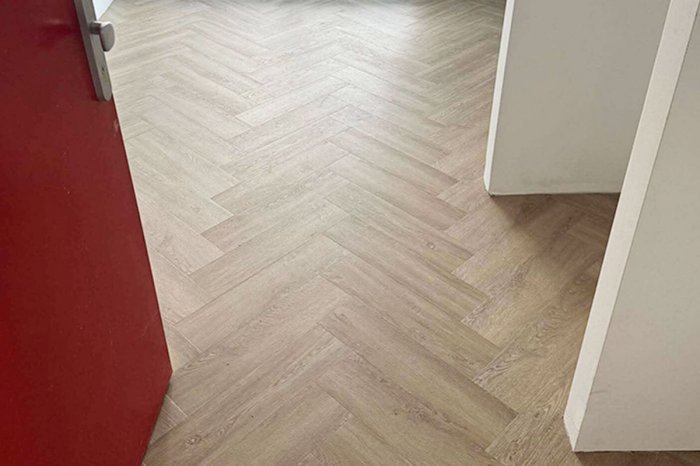 Lepený vinyl v byte: Vďaka precíznemu napojeniu v rohoch aj pozdĺž stien pôsobí podlaha čisto a jednotne.