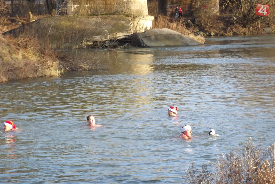 Medvede sa stretli pri štadióne, odkiaľ sa presunuli na výbežok rieky pod mostom. Netrvalo dlho a skupinka nadšencov, ktorí mali na sebe len plavky a poprípade mikulášske čiapky, si už vychutnávali chladivý kúpeľ.