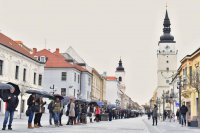 FOTO: Podporili požiadavky učiteľov, Hlavnú ulicu lemovali čierne dáždniky
